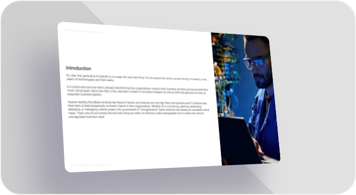 Fulfilling the Promise of Generative AI 2 Introduction It’s clear that generative AI (GenAI) is no longer the next new thing. It’s not around the corner, up and coming, imminent, or the object of technologists and think tanks. It is a here-and-now tool that is already transforming how organizations conduct their business activities and accomplish their most critical goals. More than that, it has unlocked a wealth of innovation shaped not only by technical geniuses but also by pragmatic business leaders. Anyone reading this eBook certainly has heard of GenAI, and chances are very high that most business and IT professionals have been at least tangentially involved in GenAI in their organizations. Whether it’s in conceiving, planning, developing, deploying, or managing a GenAI project, this groundswell of “first-generation” GenAI adoption has already far exceeded critical mass. That’s why it’s not simply the next new thing but rather an effective, highly leverageable tool to create new, almost unimaginable business value. © 2024 TechTarget, Inc. All Rights Reserved. Back to contents
